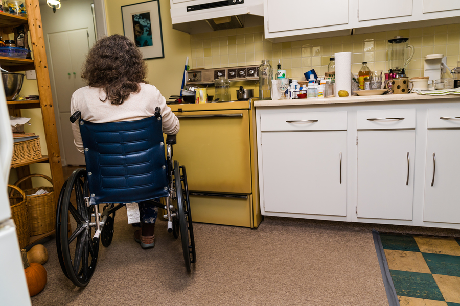Rebecca Allen waits in her kitchen for her care giver to come make her a meal in her home on Hopkins Ave. in Mount Pleasant, Mich. on Sunday, October 28, 2018. Allen has been paralyzed from the waist down since 2005, when she was finally diagnosed with Lyme disease after 14 years.